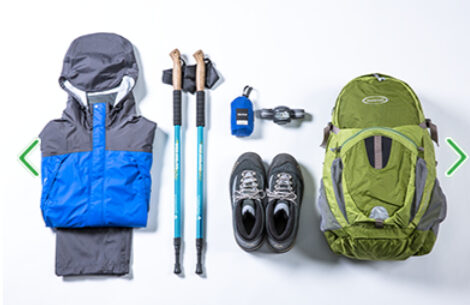 登山リュック・登山靴などの装備を