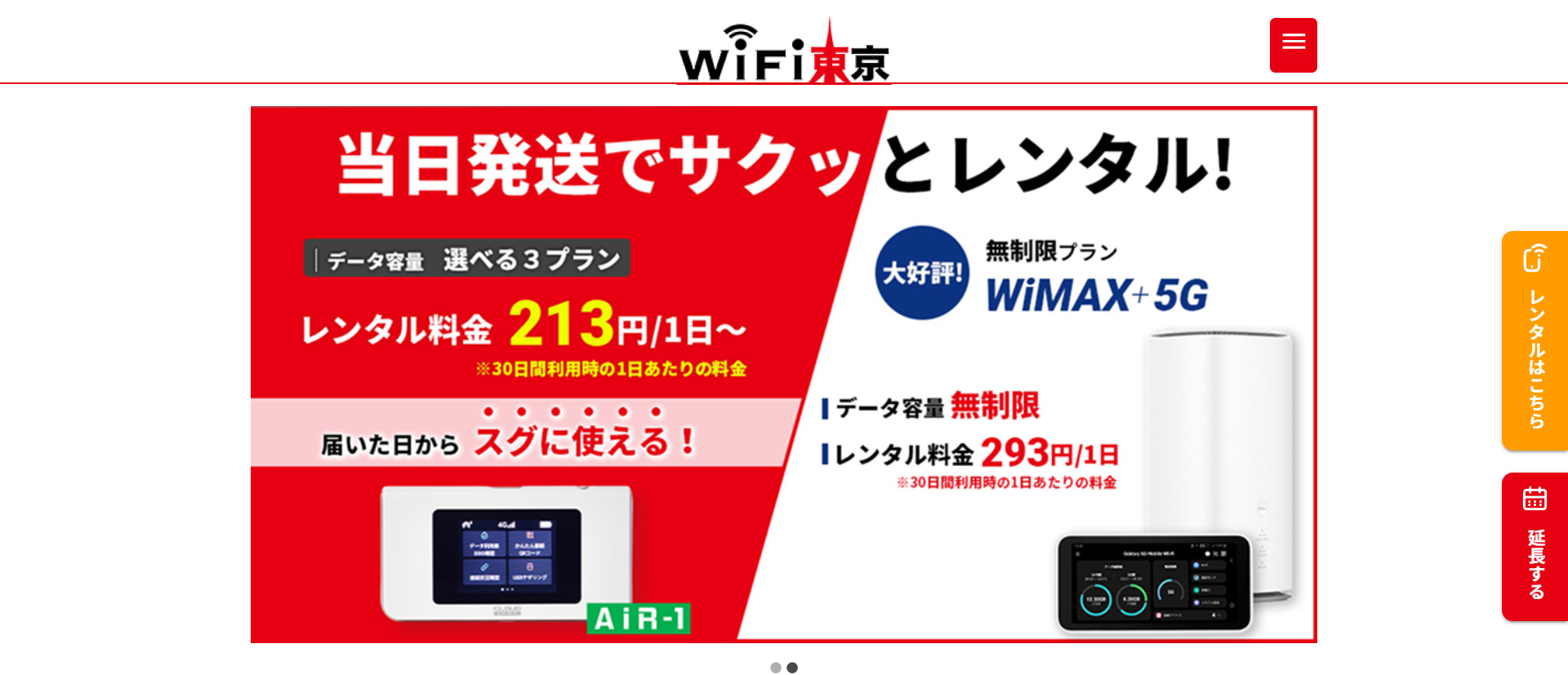 WiFiレンタルの利用では、